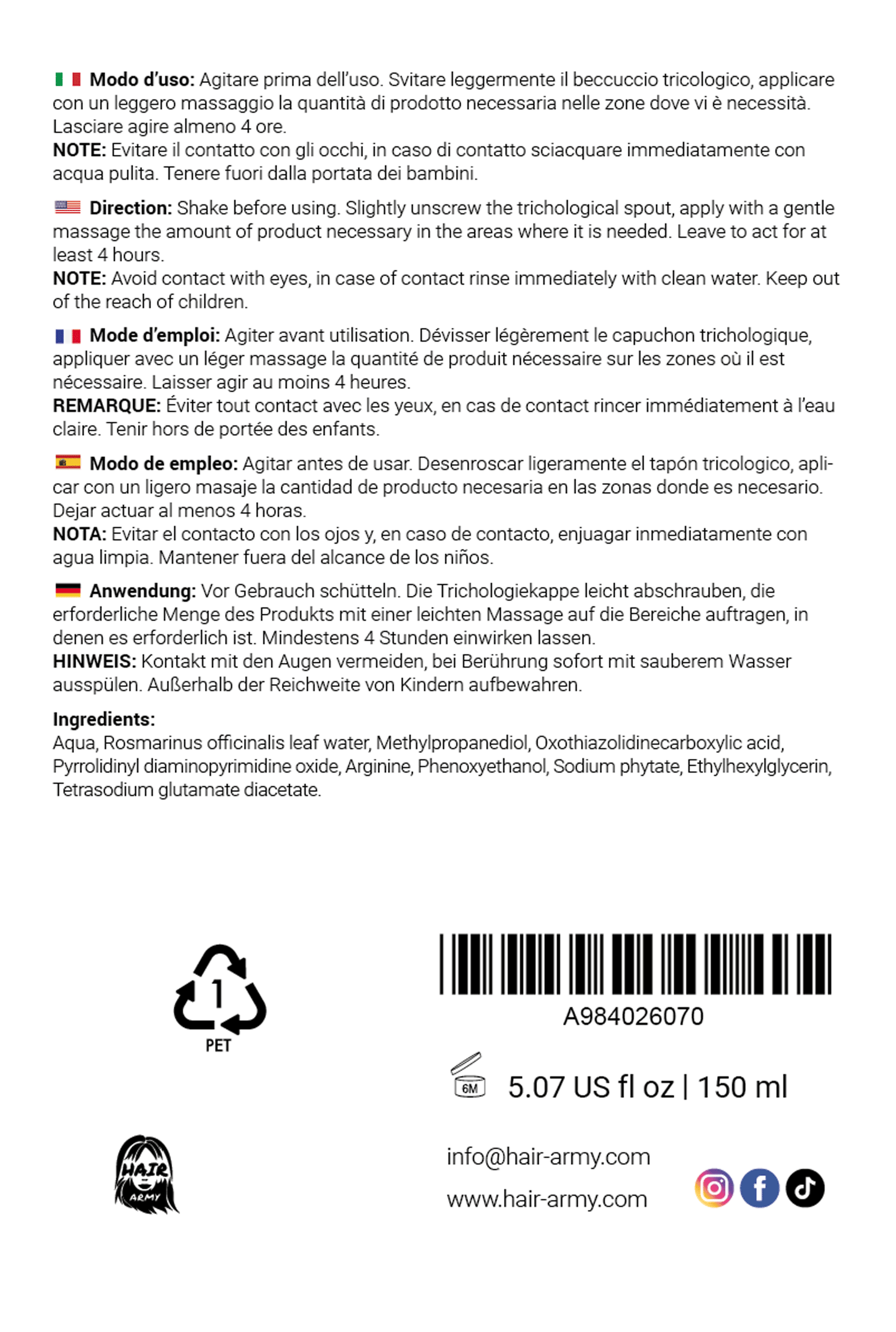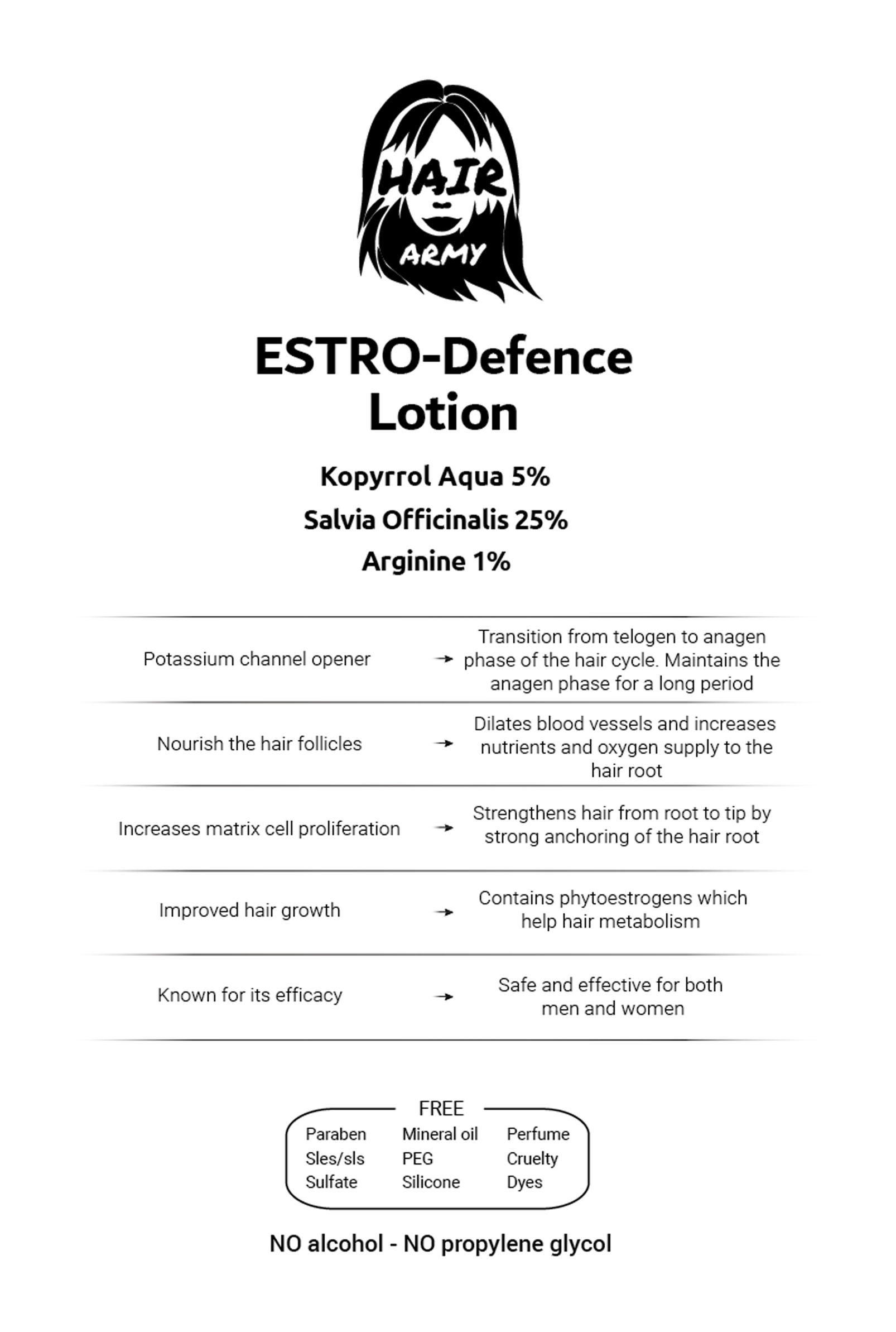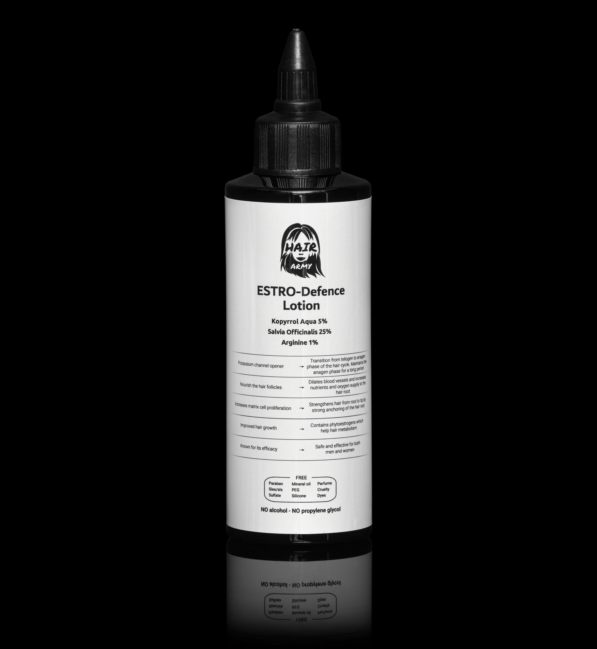 - Lotion gegen Haarausfall basierend auf KOPYRROL AQUA®, SALVIA OFFICINALIS und ARGININ.