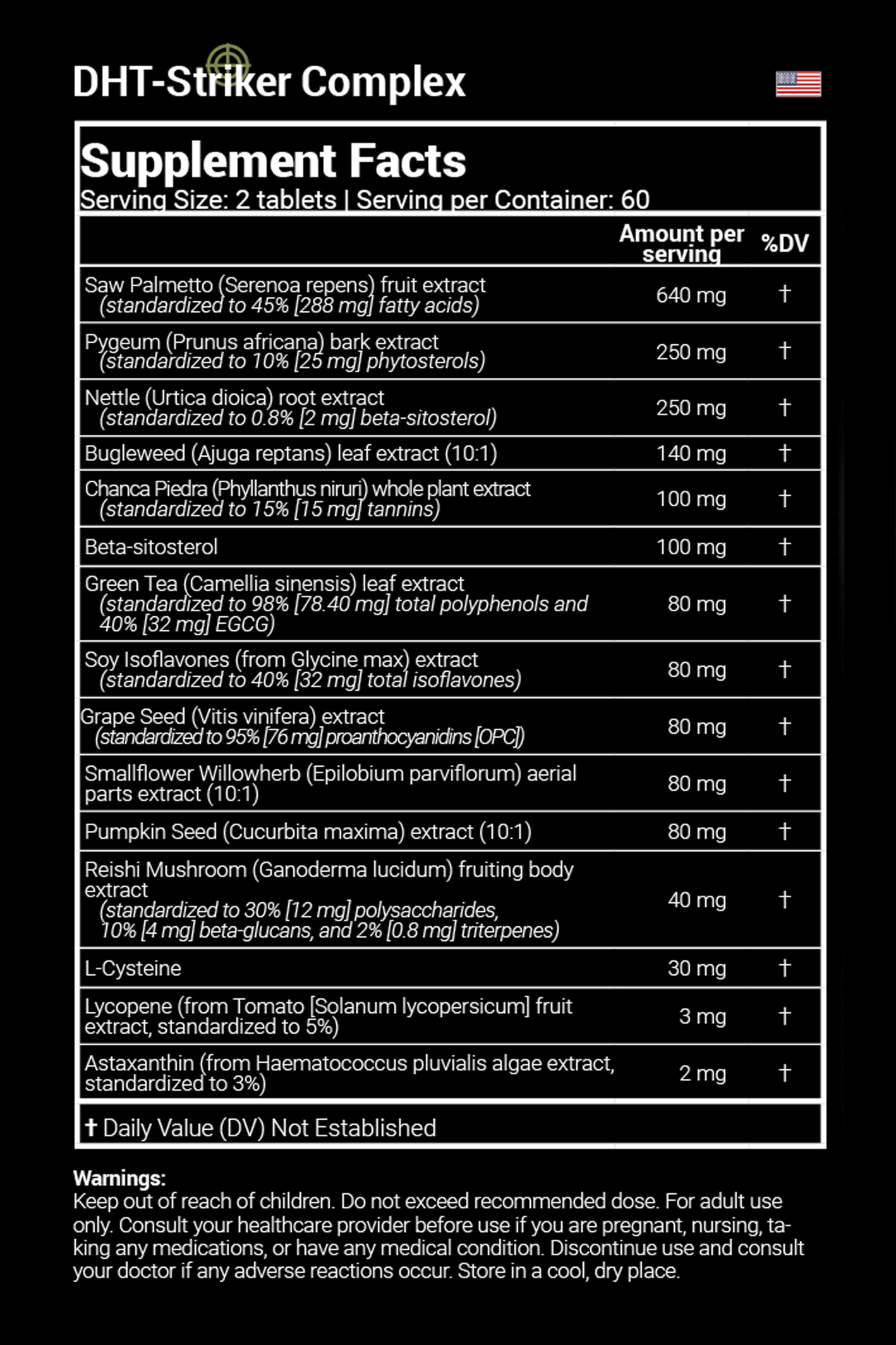 - We recommend taking 2 tablets a day of DHT-Striker Complex with plenty of water (morning and evening).